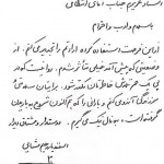 به گزارش اخبارگو به نقل از دولت بهار در این نامه آمده است: به نام خدای مهربان استاد عزیزم جناب آقای انتظامی با سلام و ادب و احترام از این فرصت استفاده کرده ارادتم را تجدید می کنم. از وضعیتی که پیش آمد خیلی متاثر شدم. روا نیست که در پی یک عمر تلاش ......