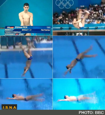فک در دومین تلاش خود زمانی که قصد داشت از روی سکو سه متر شیرجه بزند، نتوانست عملکرد خوبی داشته باشد و دست و پایش از یک دیگر باز شدند و هر کدام به سمتی رفتند!