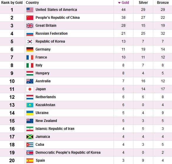 کشورمان ایران تا این لحظه با داشتن ۴ طلا و ۵ نقره و ۳ برنز در جایگاه ۱۶ این رنکینگ قرار دارد.