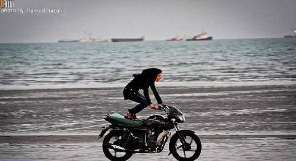 دختر اهوازی و آرتیست بازی بر روی موتور در کنار ساحل