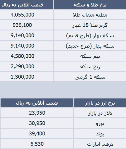 قیمت سکه و دلار ارز شنبه