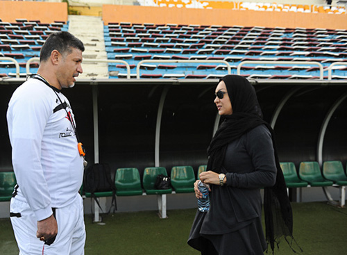 به گزارش ایسنا نیکی کریمی کارگردان وبازیگر مشهور سینما با حضور در تمرین امروز راه آهن با علی دایی سرمربی این تیم نیز دیدار و گفتگو کرد. عکس های این خبرگزاری از حضور وی در تمرین راه آهن را می بینید.