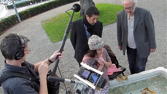استاد فیلمسازی و محبوب «ژان لوک گدار» سر صحنه فیلم جدیدش، «Adieu au langage/خداحافظی با زبان» در کنار فیلمبردار فابریس آراگنو دیده میشود. ژان لوک گدار هشتاد و یک ساله از معتبرترین فیلمسازان موج نوی فرانسه است که در کارنامهاش فیلمهای محبوبی چون «ازنفس افتاده» دارد. آخریم فیلم او«سوسیالیسم» بود. گدار فیلم جدیدش را به صورت سه بعدی میسازد.
