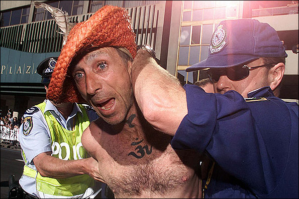 * یک اکتبر ۲۰۰۰: وی از حفاظ پرید و در حالیکه یک ساز بادی استرالیایی به دست داشت، در برگزاری رقابتهای دوی ماراتن المپیک ۲۰۰۰ سیدنی اختلال ایجاد کرد.