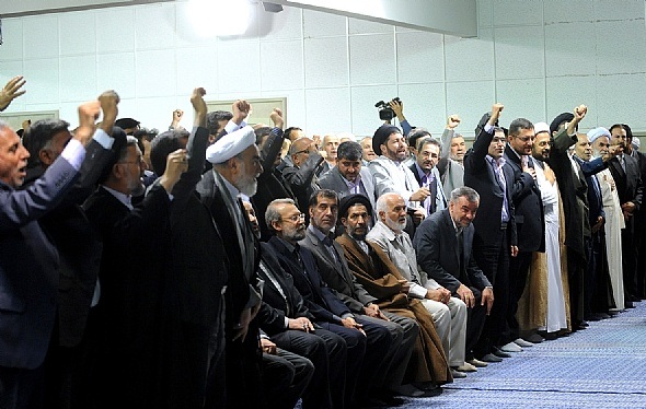 اخبارگو : سایت روزنامه ایران تحت مدیریت عالی جوانفکر با انتشار عکسی از این که لاریجانی، باهنر، توکلی و ابوترابی هنگام ورود رهبر انقلاب شعار نداده اند، انتقاد کرد.
