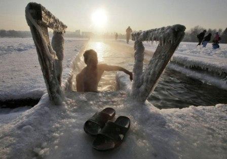عکس/شنا در ۲۳ درجه زیر صفر