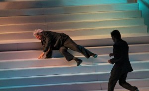 وقتی داوود رشیدی برای تقدیر روی سن تالار وحدت حاضر شد، به دلیل تعدد پله های دکور، در پایین آمدن دچار مشکل شد.